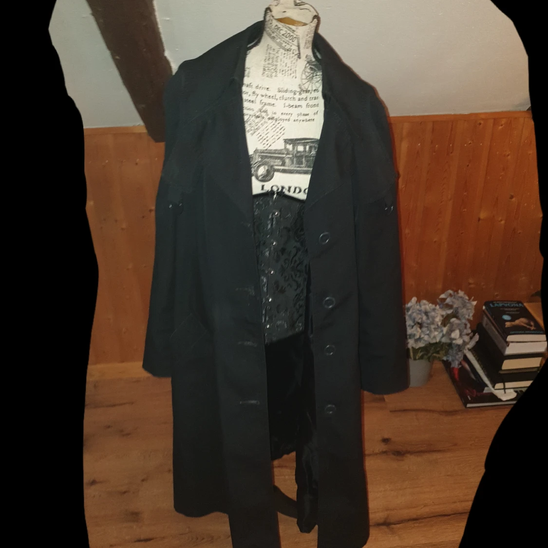 En längre kappa/rock passar perfekt till hösten/vintern🍂 Står ingen storlek så antar att det är "one size" skulle beskriva den som oversized för S men passar säkert XS-XL beroende på smak/passform!! PRISFÖRSLAG GÅR BRA❗