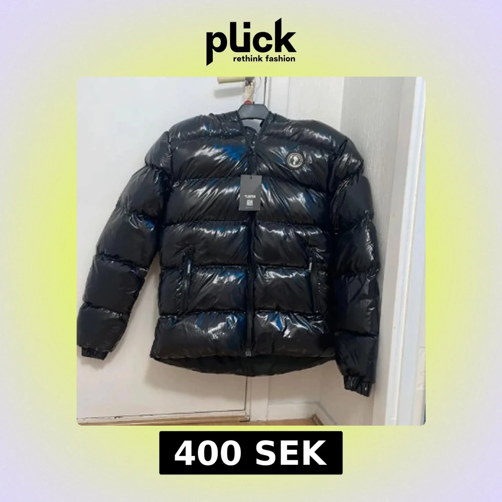 Säljer en svart, glansig pufferjacka från Trapstar med fet logga på ryggen och patch på bröstet. Jackan har huva med snörning, dragkedja framtill och två fickor med dragkedja. Perfekt för kalla dagar när du vill ha streetstyle-vibe. Säljer den billigt för ska på semester snart