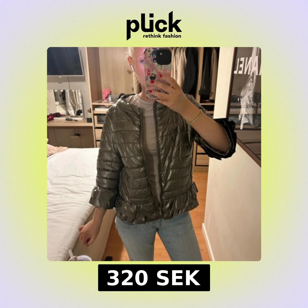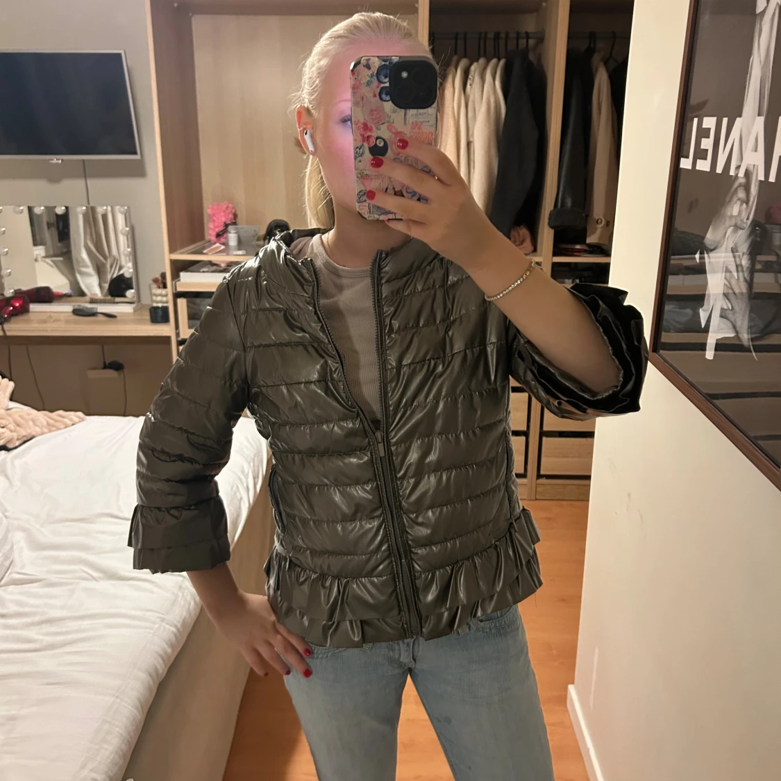 Säljer denna lite herno liknande jacka, trekvartsärmar och volangdetaljer vid ärmslut och nederkant. Jackan har dragkedja framtill och quiltad design. Storlek M men passar mig som är en S, så skulle mer säga storlek xs-m. Pris går att diskutera