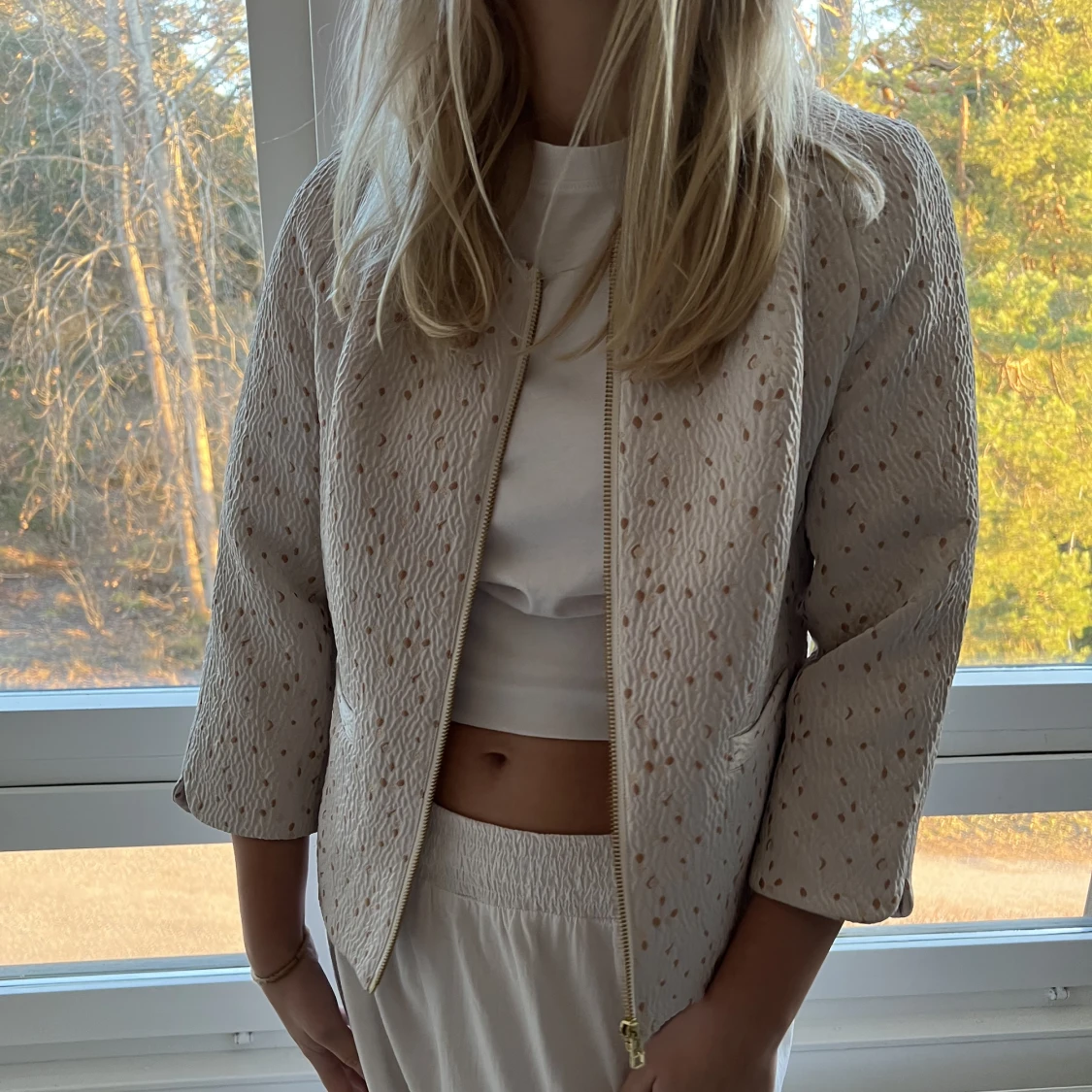 Jättefin trekvartsärmade jacka/kofta från noa noa, som är perfekt till våren💞Är i storlek 36 och passar mig som har xs/s💞💞