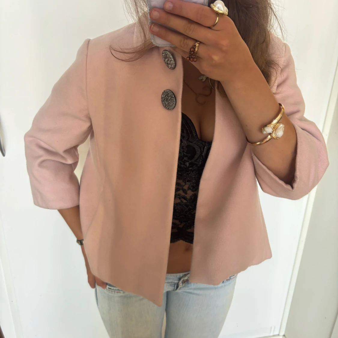 Så söt Trekvartsärmad rosa kappa från Maje! Jag är 168 och det är mina bilder, köp via köp nu direkt eller Swish, kvar tills markerad som såld 💖 står ej storlek men passar som M