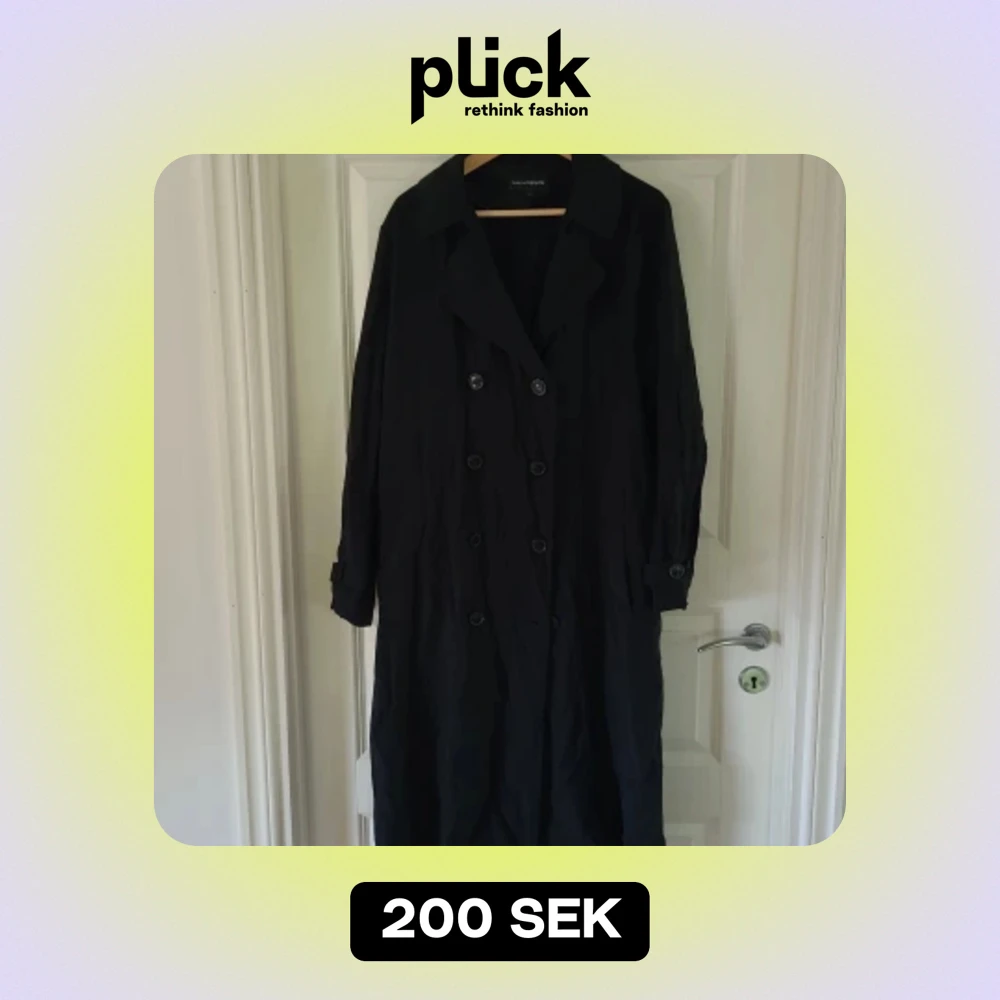 Svartflammig lång kavaj, jacka, trenchcoat. Använd 1 ggn. Strl L