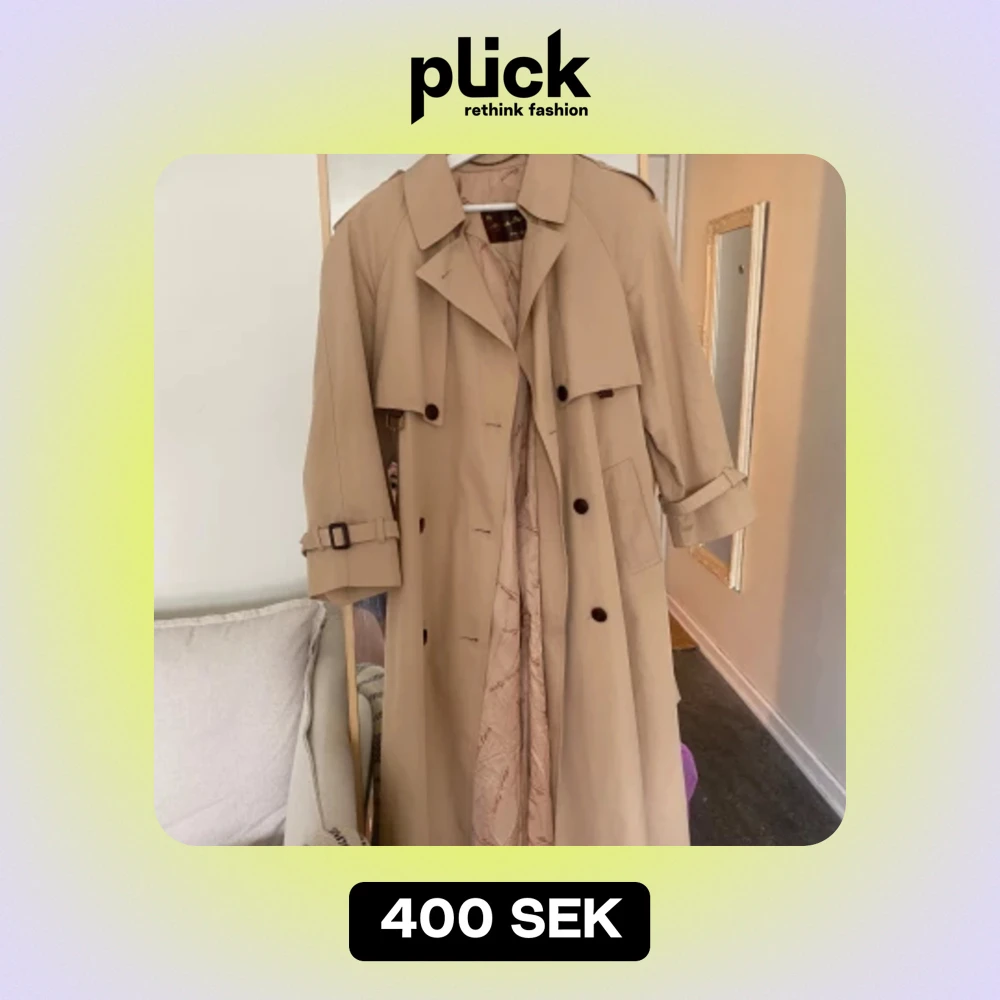 jättefin trenchcoat, vet inte märket men jättesnygg och bra kvalitet!! Väldigt coola detaljer på den, står inte storlek men skulle säga S/M. Passar både tjej och kille!🥰