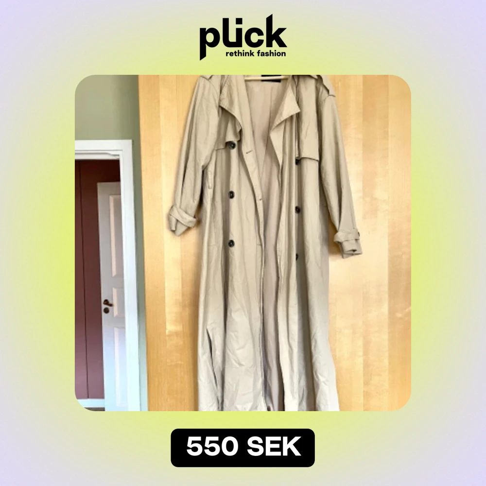 Lång trenchcoat med knappar på båda sidor i 100 % bomull från märket Y.A.S. Midjeband saknas! Storlek M, men skulle säga att den känns mer som en L då den är lite oversized.