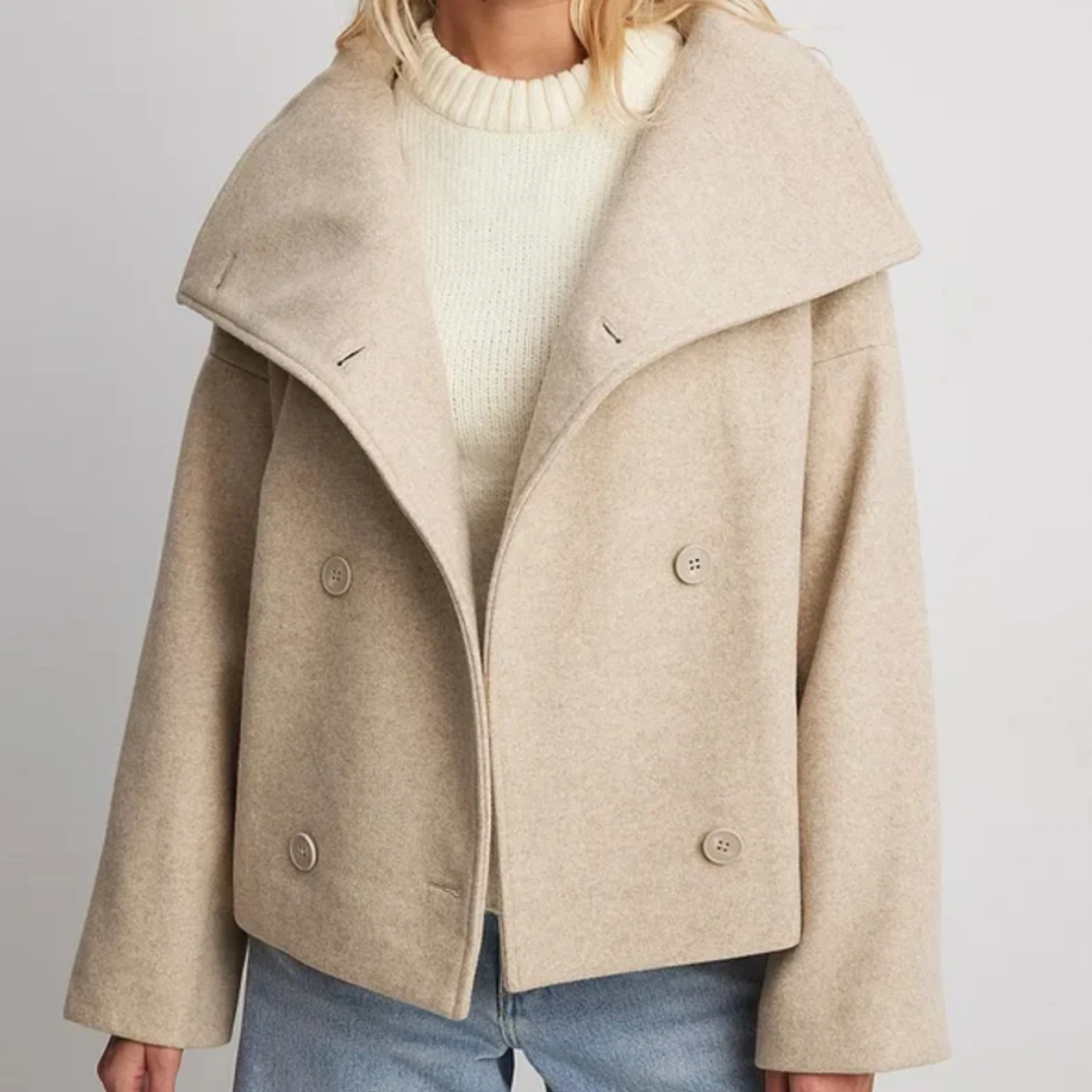 Så fin beige kappa till våren! Den är använd och har blivit lite nopprig och fått en fläck vid armen, men det syns inte tydligt. Nypris 1600kr