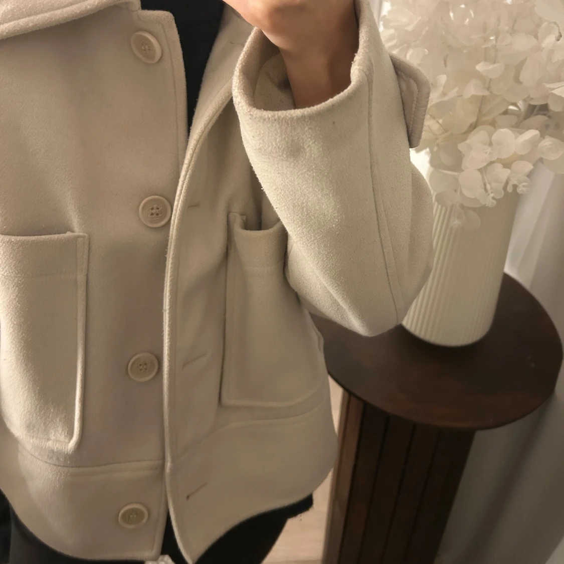Säljer en beige jacka från Kappahl i storlek XS. Jackan har stora fickor framtill, klassisk krage och stängs med knappar. Köpt våren 2023 för 900kr men har endast används få gånger! Super fin men är tyvärr tvungen att sälja då jag har alldeles för mycket jackor 🩷