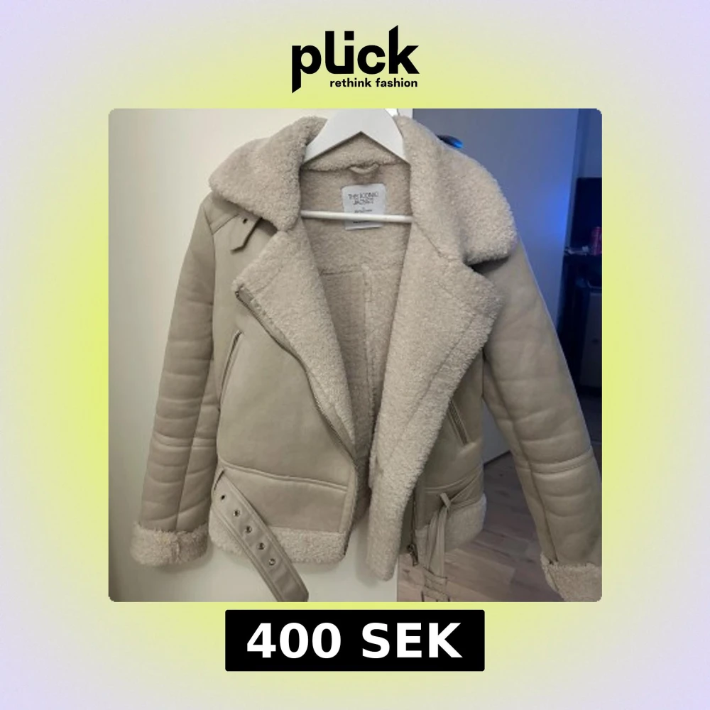 Säljer en snygg beige pilotjacka från Stradivarius med bred krage, dragkedja och bälte i midjan. Jackan har mjukt teddyfoder och detaljer vid ärmslut och nederkant. Perfekt för kalla dagar. Köpte denna förra vintern men den kom inte till användningen mer än 5 gånger.