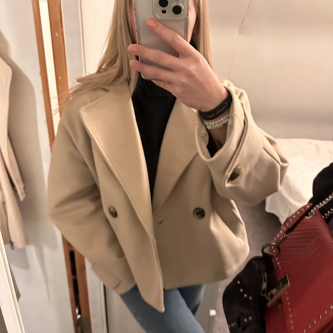 En beige kappa i storleken S. Helt oanvänd därav bra skick. Säljer pga inte riktigt min stil