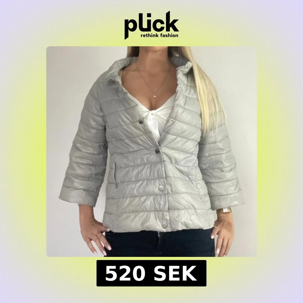 FÖLJ FÖR LIKNADE🥰 grå Herno liknande jacka med trekvartsärm knappar och krage. Går utmärkt att ha en tjocktröja under! Storlek L men passar en M! Tryck köp nu! TK-0076