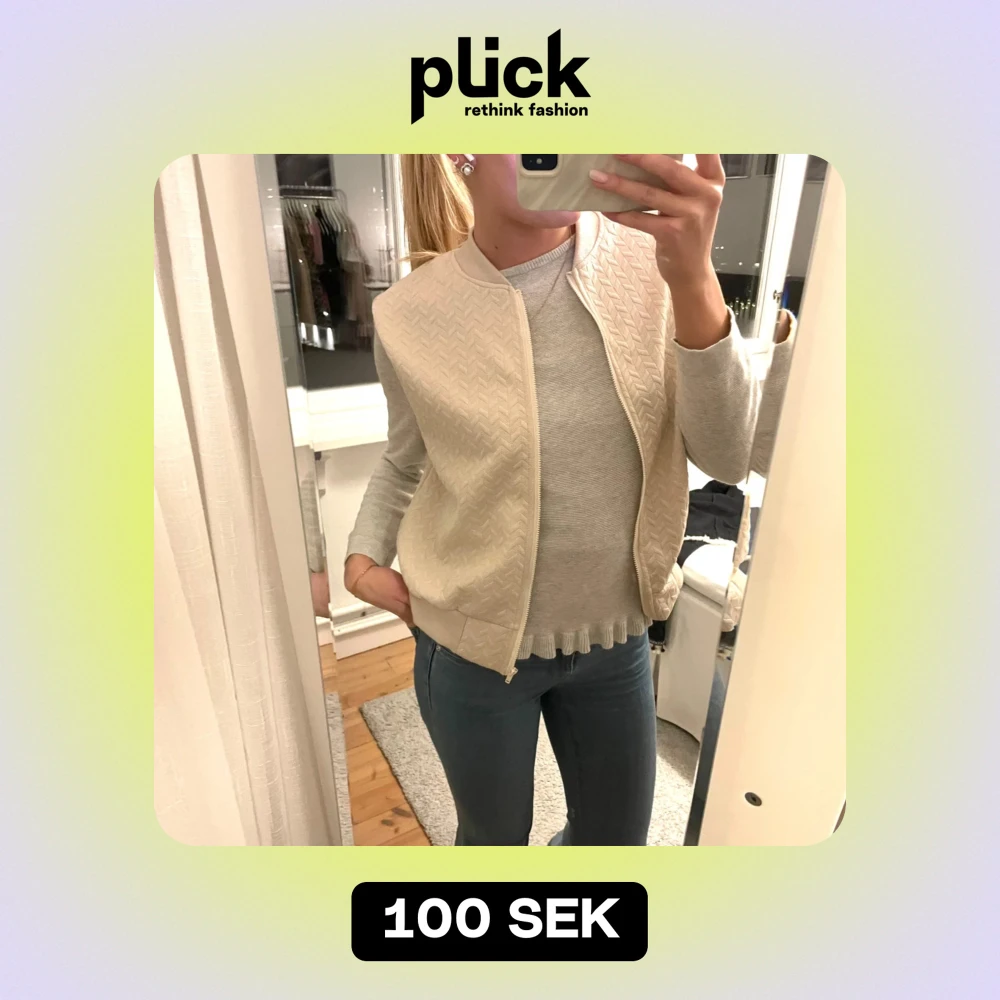 Snygg beige väst med subtilt mönster och dragkedja framtill. Perfekt för en stilren look och passar bra till jeans eller kjol.