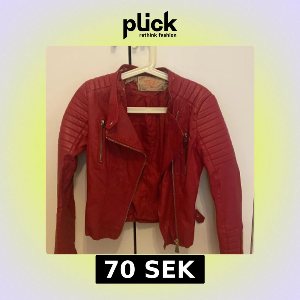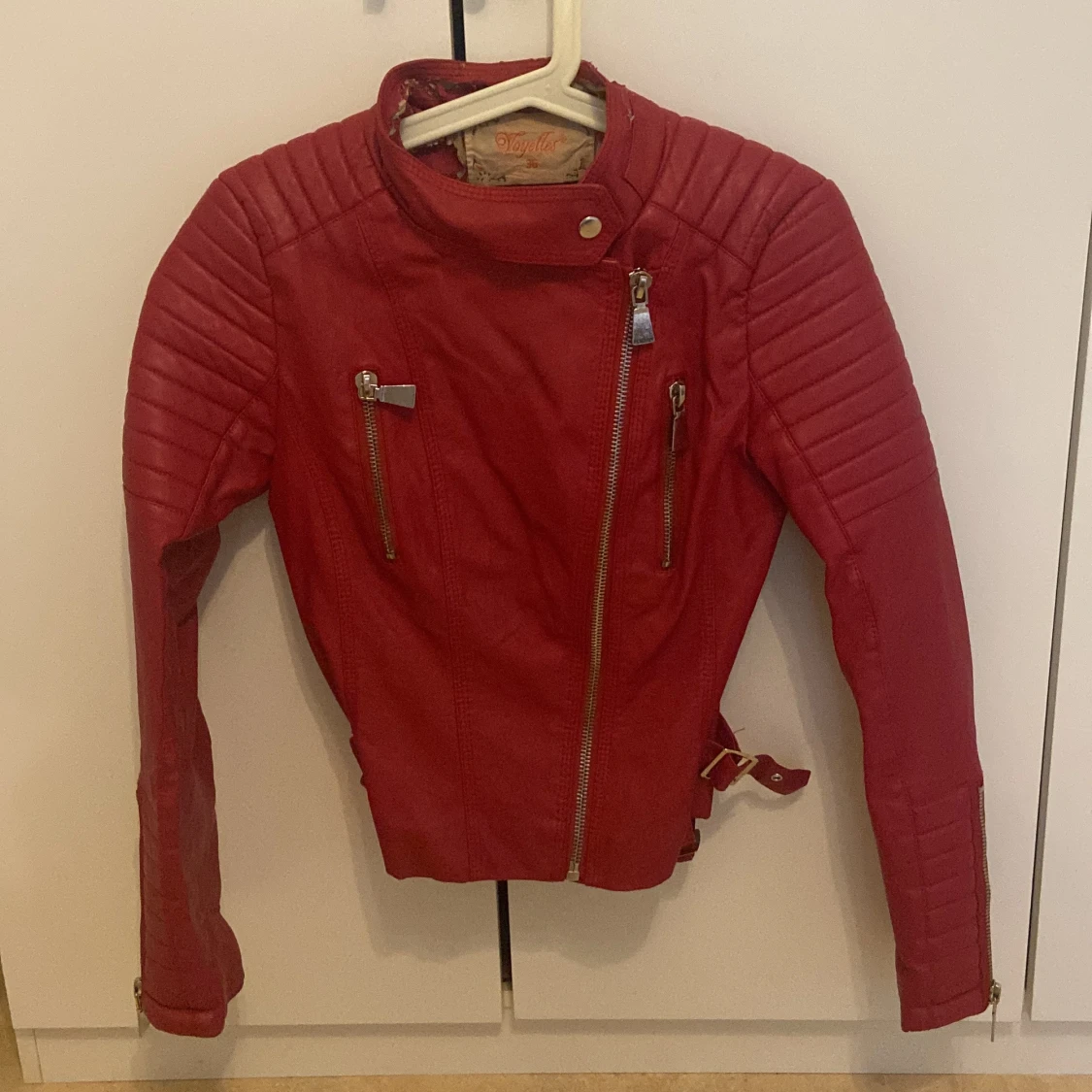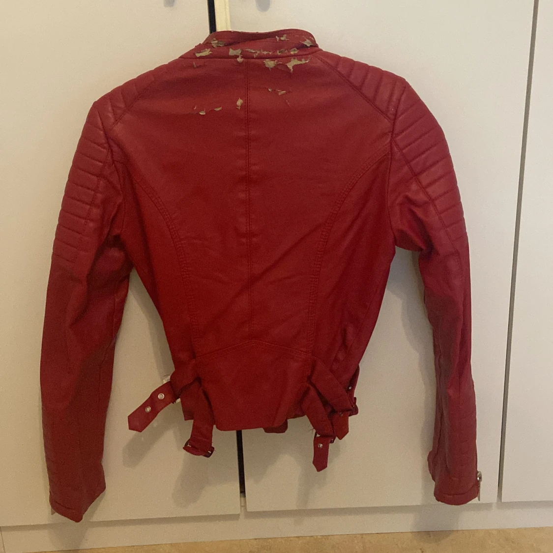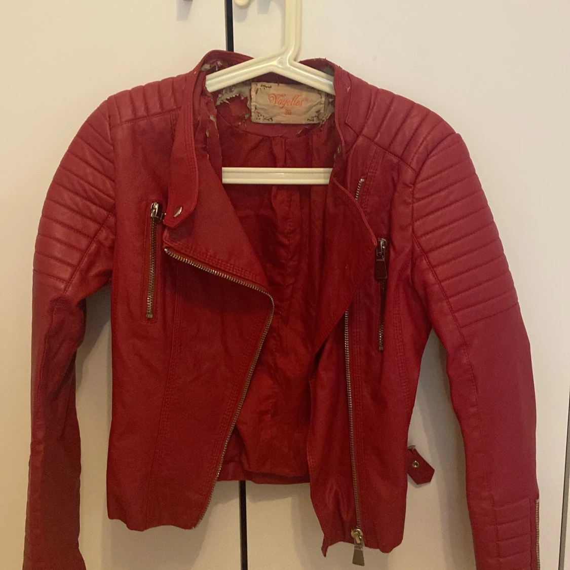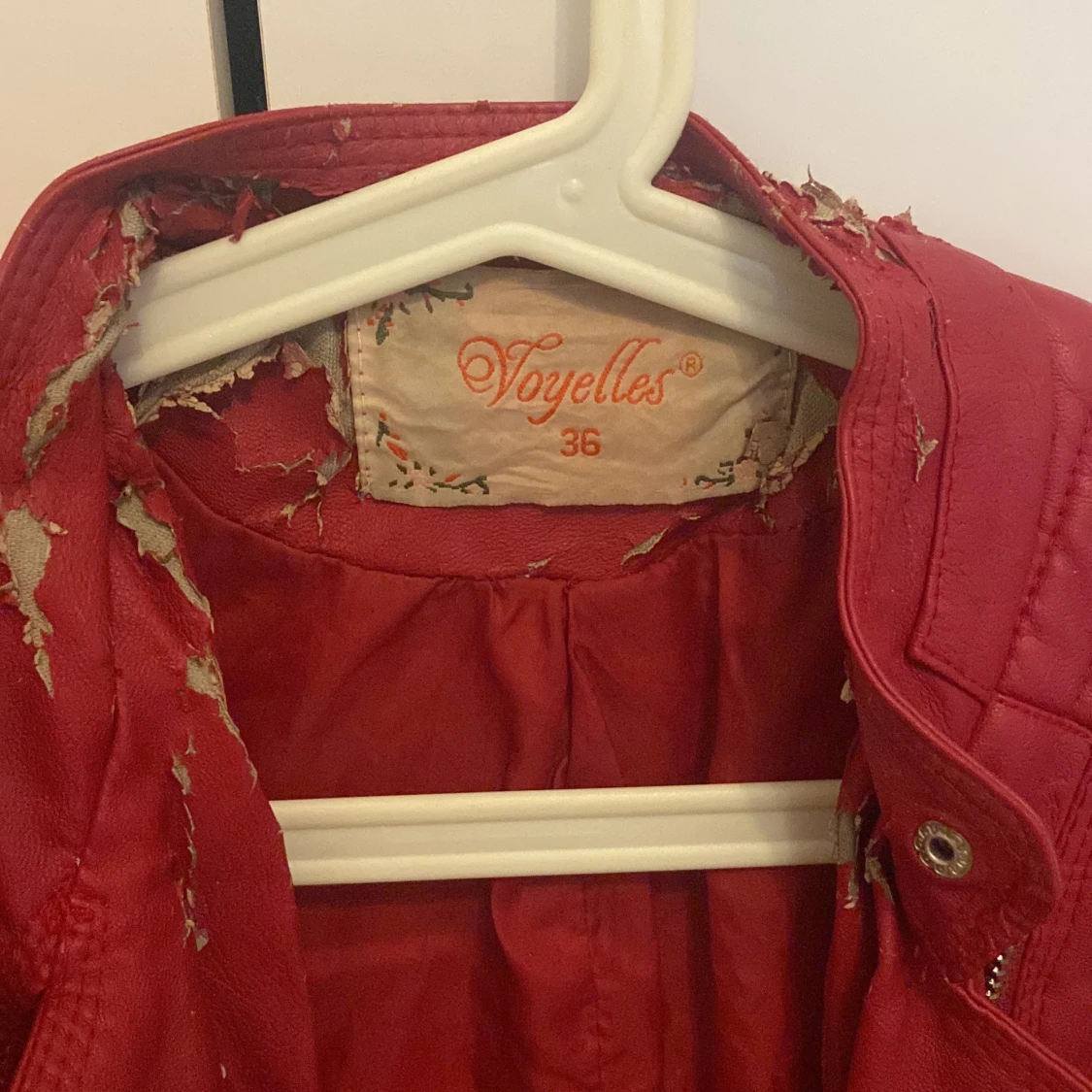 Snygg röd skinnjacka från Voyelles i storlek 36. Dåligt skick på grund av defekter (se bilder).