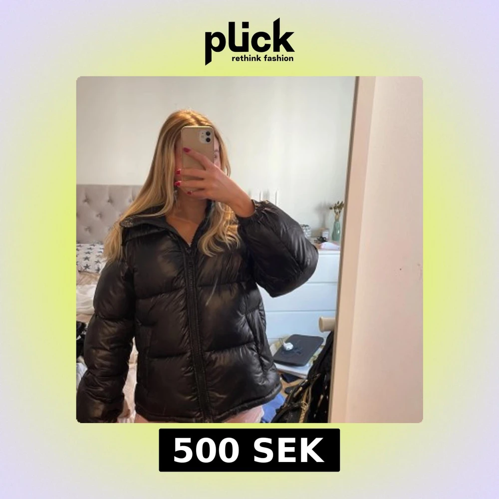 Säljer en svart pufferjacka med huva och dragkedja. Jackan är riktigt fluffig och har en glansig finish. Perfekt för kalla dagar och har en snygg, oversized look. Passar dig som vill ha en stilren och trendig vinterjacka.