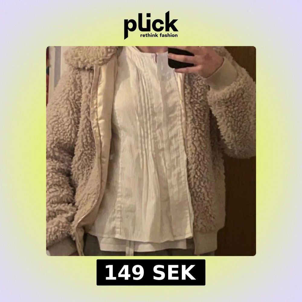 Mysig beige teddyjacka med ribbade muddar. Jackan har fickor på sidorna och även en ficka inne vid bröstet. Storlek 170 men den passar även s/xs.