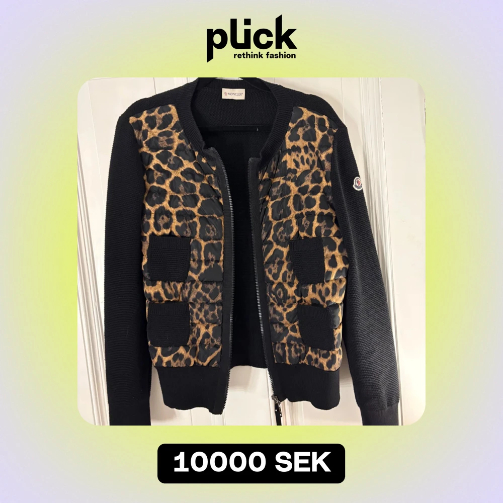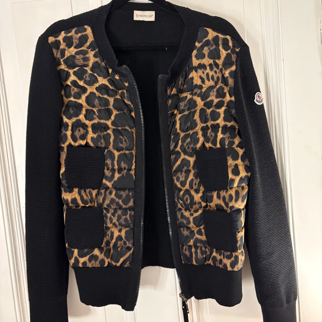 Säljer nu min leopard jacka från Moncler, det är en storlek L men passar mig perfekt som har XS/S Pris är diskuterbart. Leopardmönster och svarta stickade ärmar. Jackan har en dragkedja framtill och ribbade detaljer. Perfekt för att sticka ut med stil.
