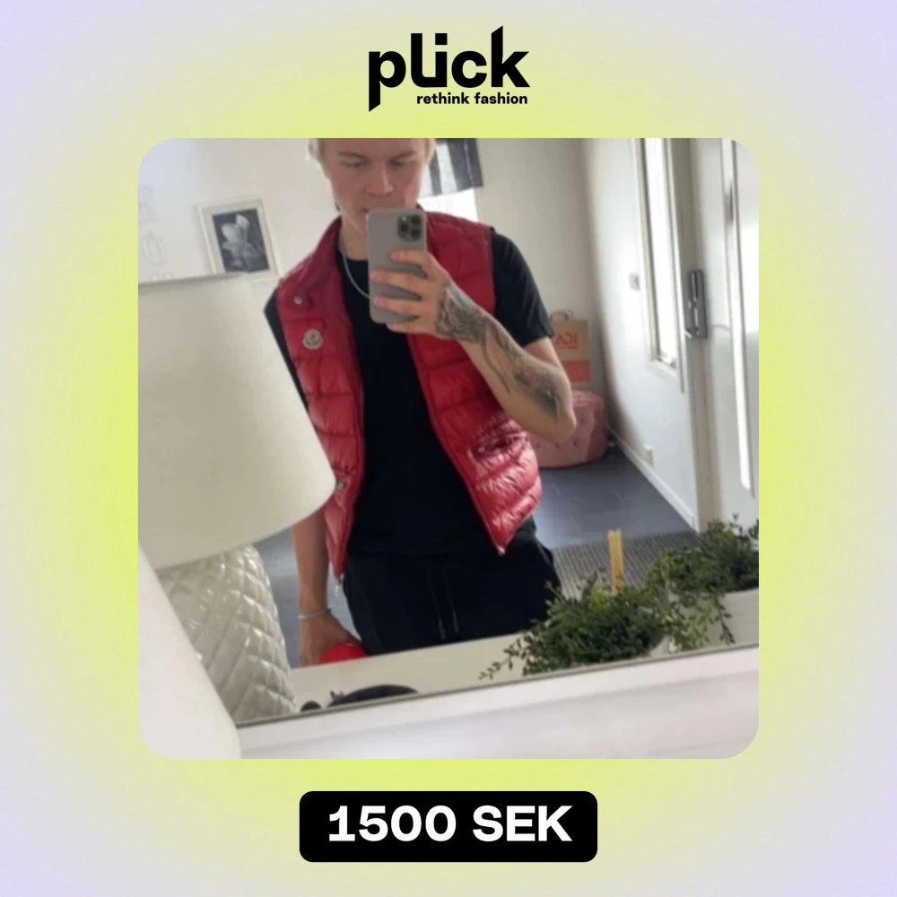 Säljer min röda moncler väst perfekt inför våren, den är storlek 2(s/m) Den är äkta men har tyvärr inge kvitto då den är 3 år gammal, den är i fint skick och har väldigt bra kvalite.