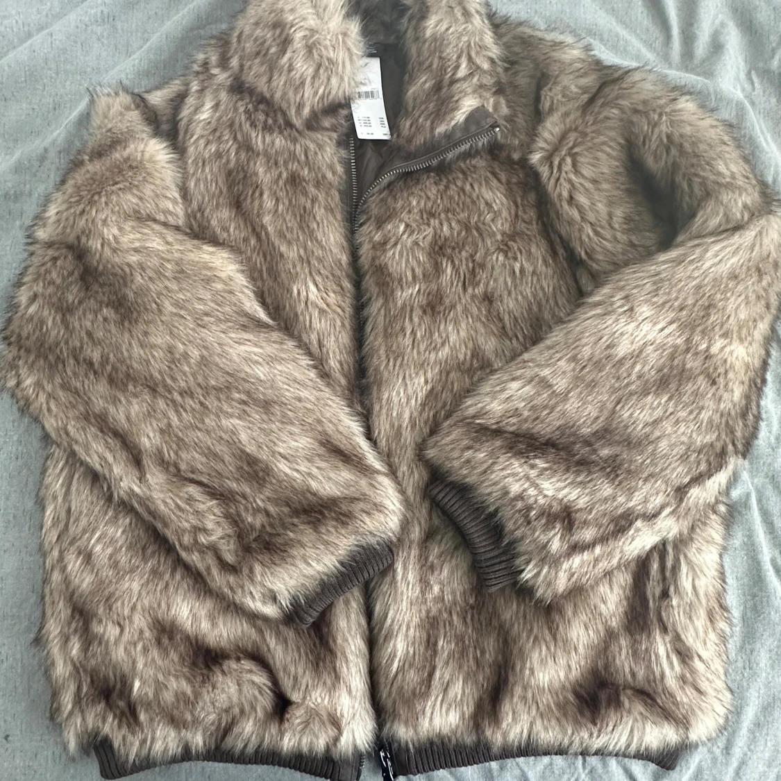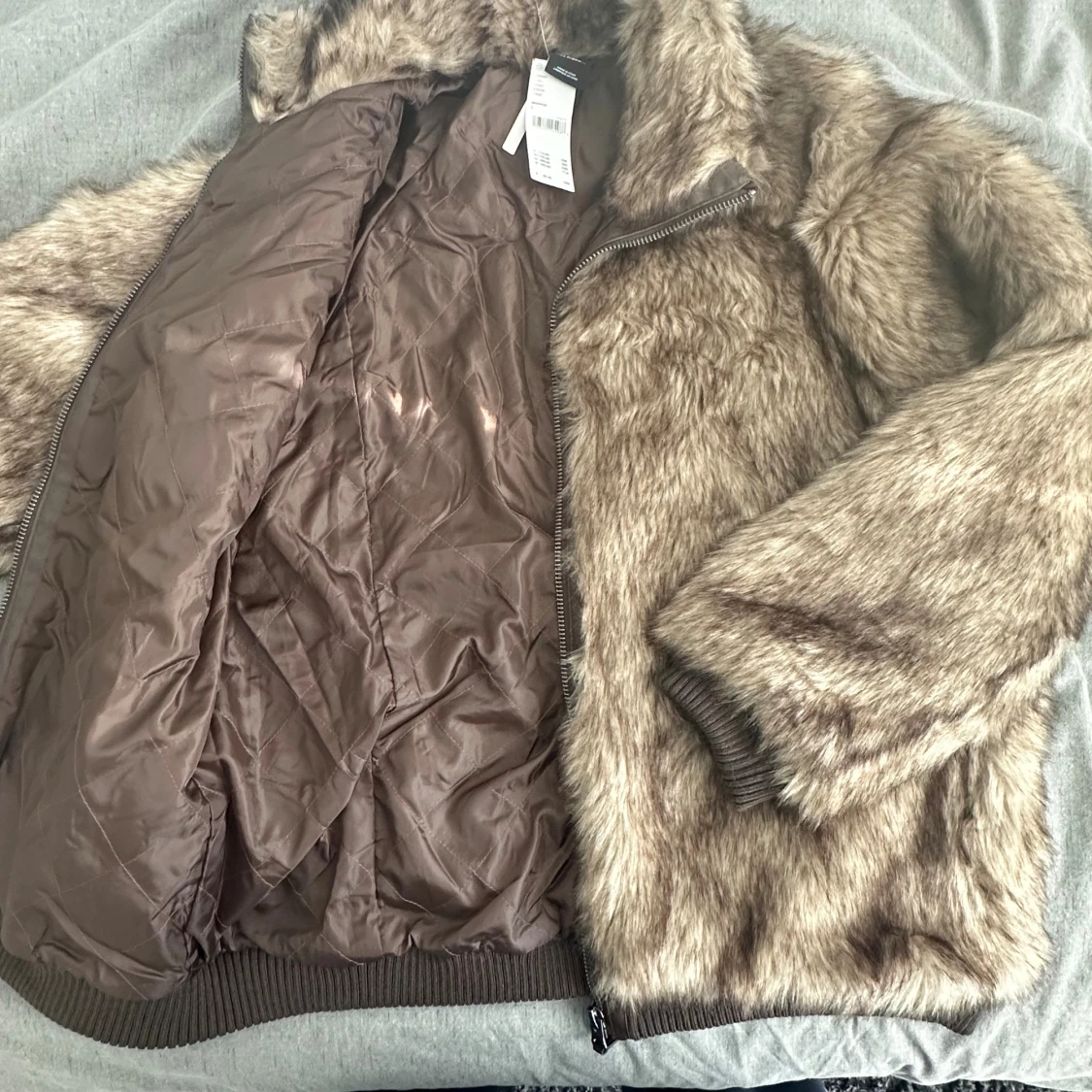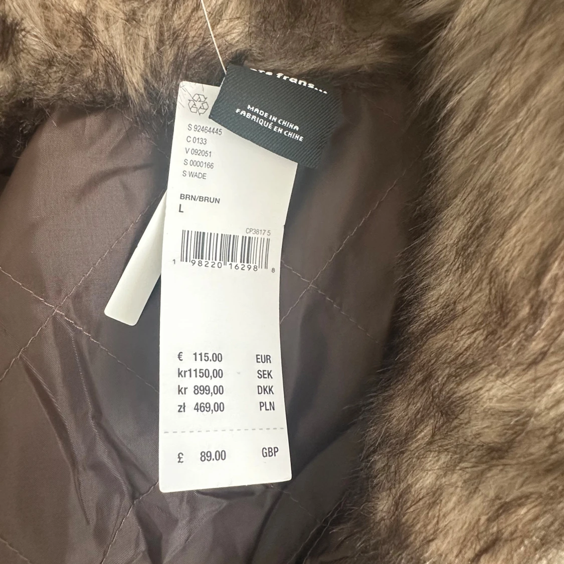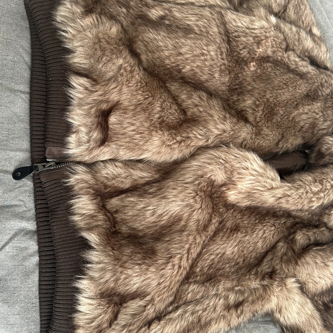 Säljer en brun pälsjacka från Selected Femme i storlek L. Jackan har mjukt fuskpälsmaterial, ribbade muddar och dragkedja framtill. Perfekt för dig som vill sticka ut med en cozy och trendig look under kyliga dagar. Helt ny!