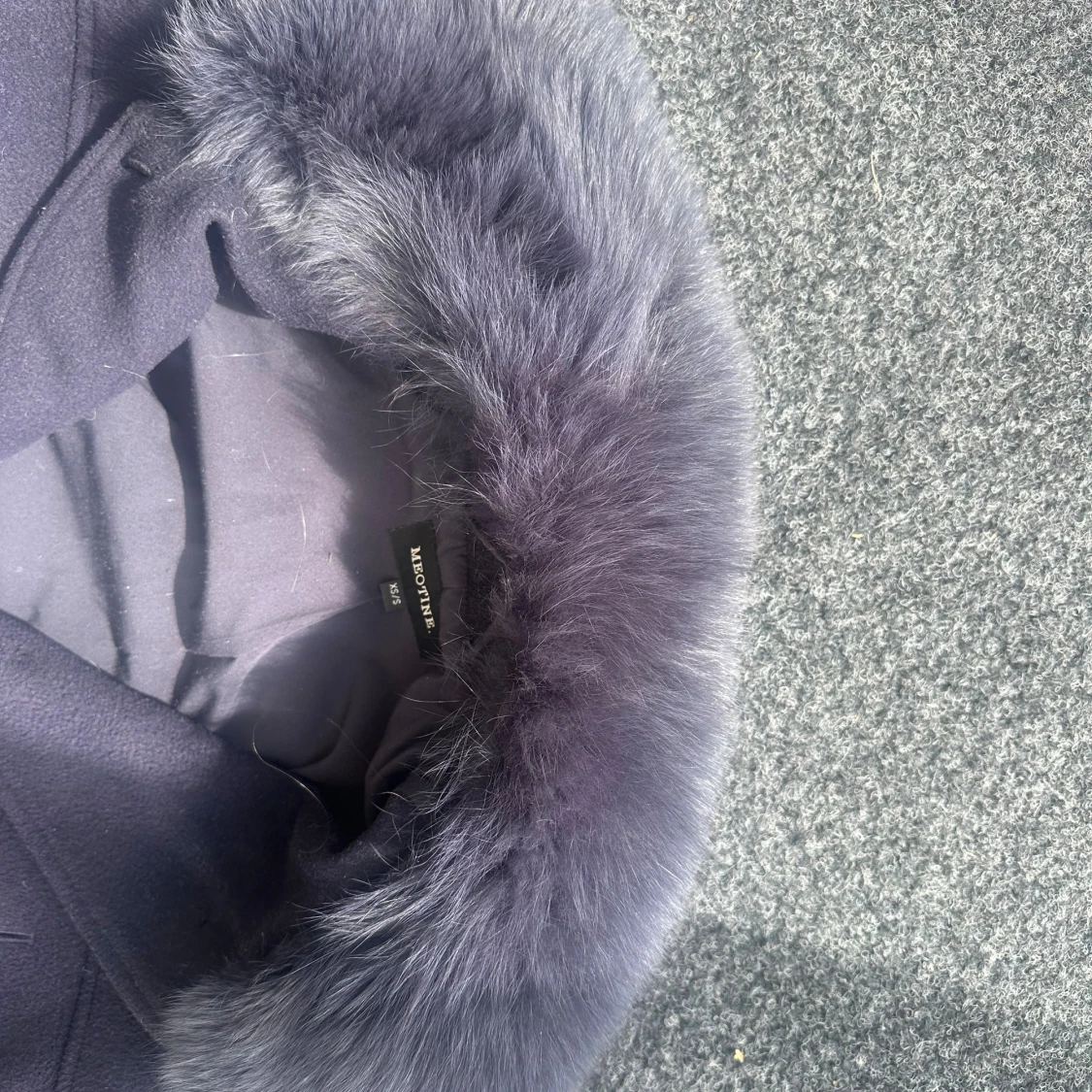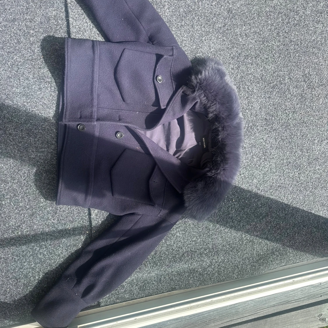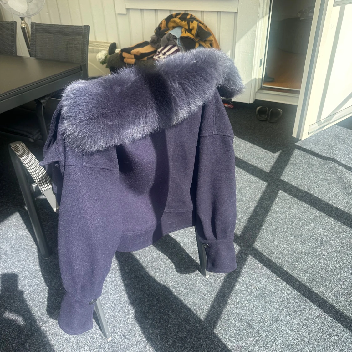 Säljer en mörkblå pälsjacka från Meotine med fluffig päls runt kragen. Jackan är har stora fickor framtill och knäpps med knappar. Perfekt för dig som vill ha en snygg och trendig look i höst och vinter. Köptes för 3500kr och är i väldigt bra skick, skriv gärna för fler frågor osv💗
