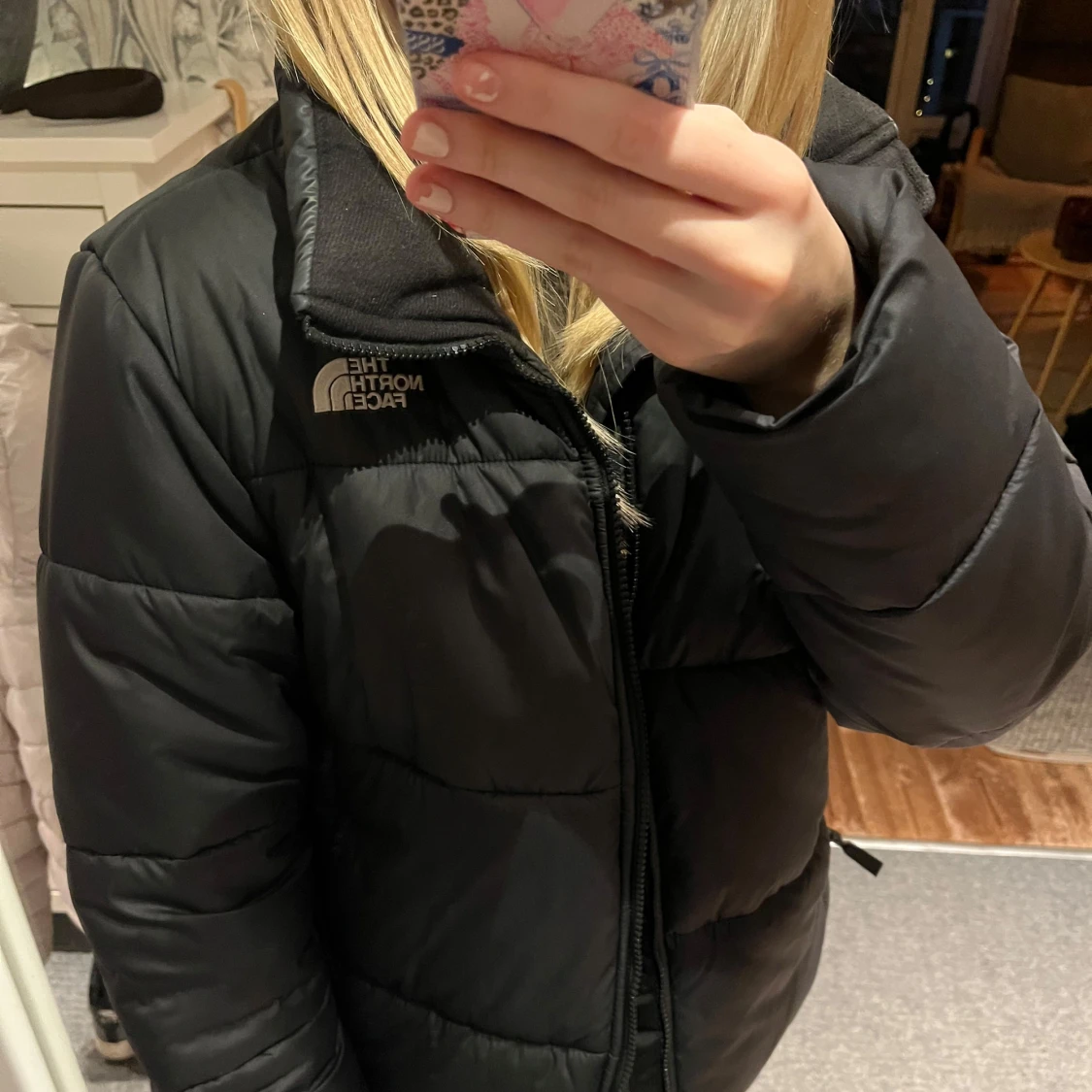 Säljer en svart pufferjacka från The North Face (Dam). Jackan har en dragkedja framtill och är perfekt för kyligare väder. Den har en hög krage för extra värme och stil. Jackan har även innerficka. Inga hål, helt ren.
