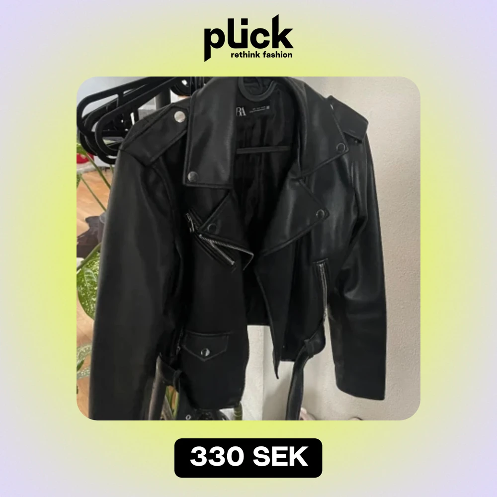 Den populära skinnjackan från Zara (inte äkta skinn). Använd fåtal gånger och i perfekt skick! Strl L men passar S-M också, croppad modell. Nypris ca 559kr, säljer min för 300kr + frakt!🤍