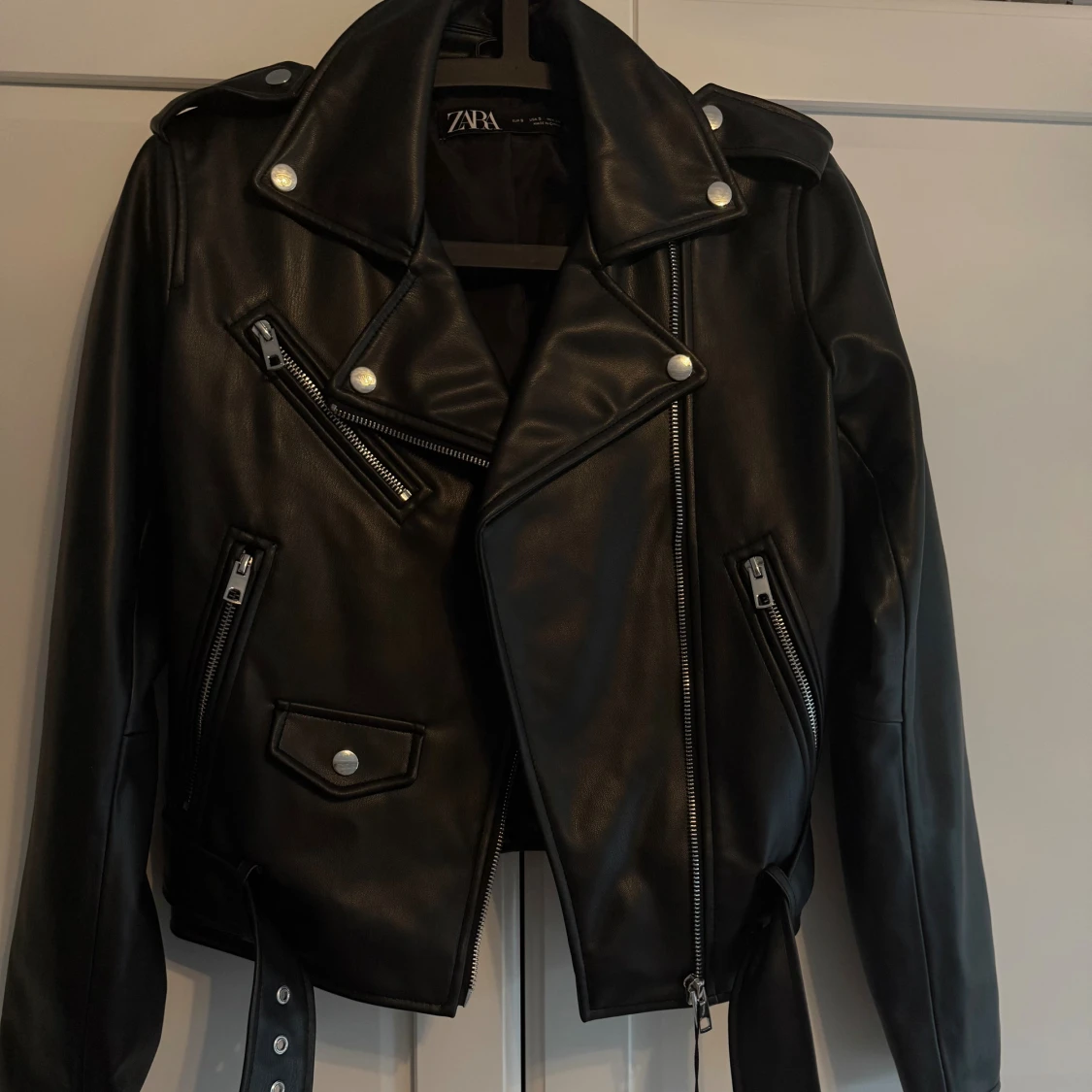 Säljer denna superfina skinnjacka från Zara. Jackan är i nyskick och helt oanvänd 💕
