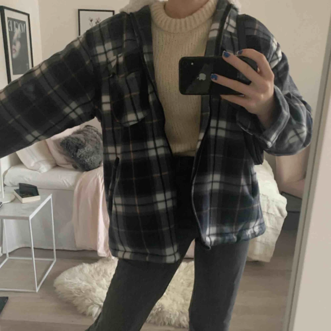trendig flanelljacka i fleece, teddyfodrad, med luva. Storlek m (har oftast s). Knappt använd. Möts helst upp! Då frakt är dyrt