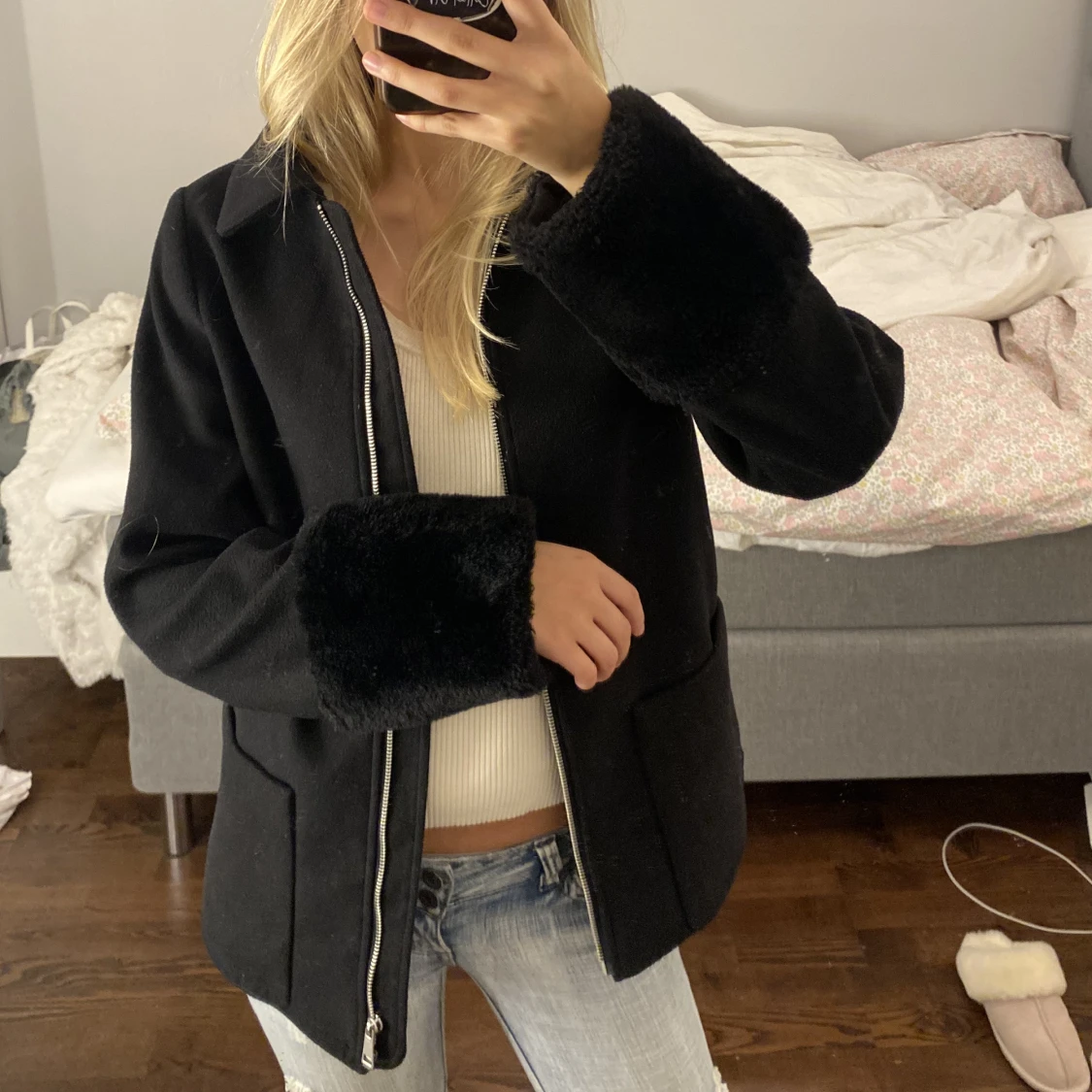 Säljer snyggaste jackan med päls vid ärmarna!! 💕💕perfekta höstjackan helt enkelt! Köp gärna genom ” köp nu” för en smidig affär. ( Jag har själv gjort jackan kortare genom att sy upp den) så denna finns ej att köpa) ☺️