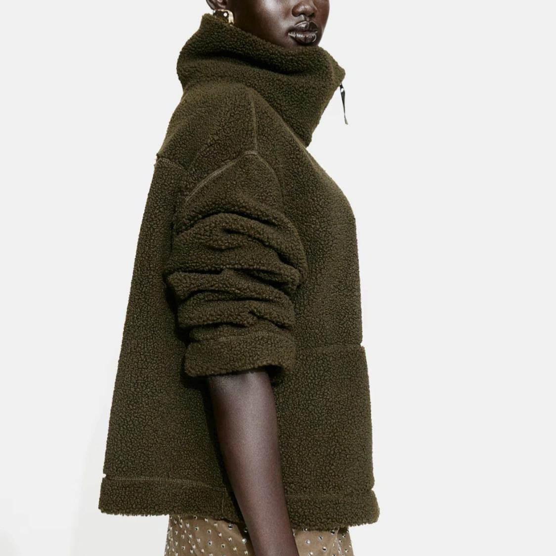 Säljer den trendiga och super mysig gröna teddyjackan från Zara🤍Jackan är i storlek M men passar mig perfekt som har S i kläder. Den är lite oversized vilket gör den mysig men samtidigt inte för stor. Skriv för egna bilder💕