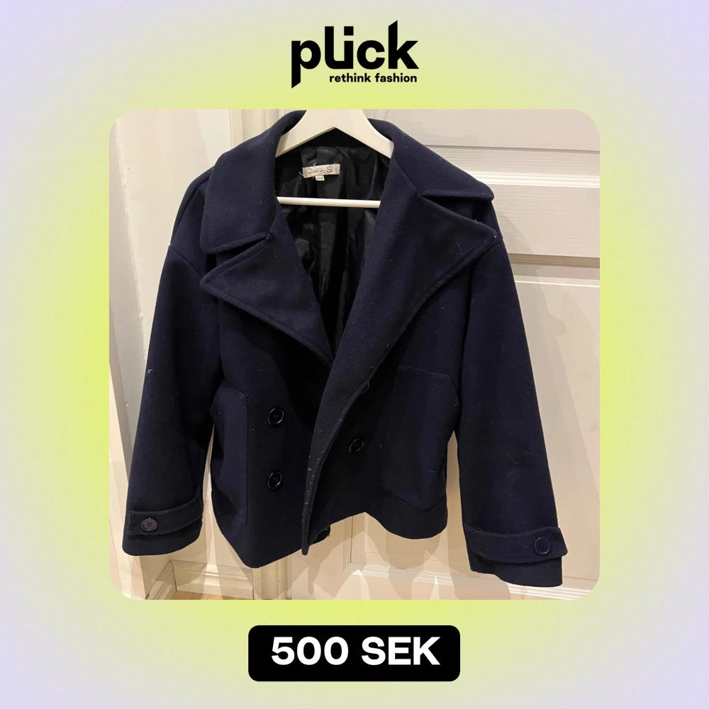 Säljer en snygg marinblå kappa från designbysi, med dubbelknäppning och bred krage. Perfekt för höst, vår och vinter! Den har långa ärmar och en stilren design som passar både till vardags och fest. Den är i jätte bra skick!💞