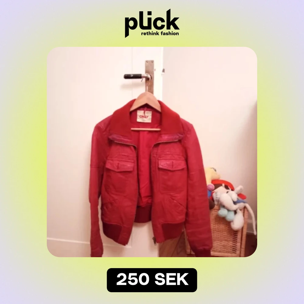 Jättefin röd läderjacka i storlek M från only! Har haft den länge men den har nästan aldrig kommit till användning, jättebra skick! Nypris runt 1000 därav priset 💓