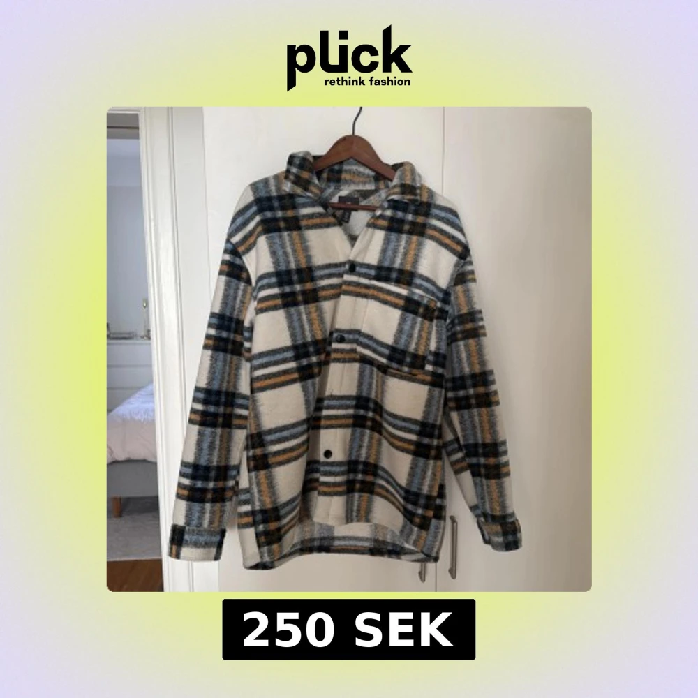 Säljer en stilren rutig overshirt från H&M i beige, blå och gul. Overshirten har långa ärmar och knappar framtill. Perfekt för lager-på-lager under kyligare dagar.