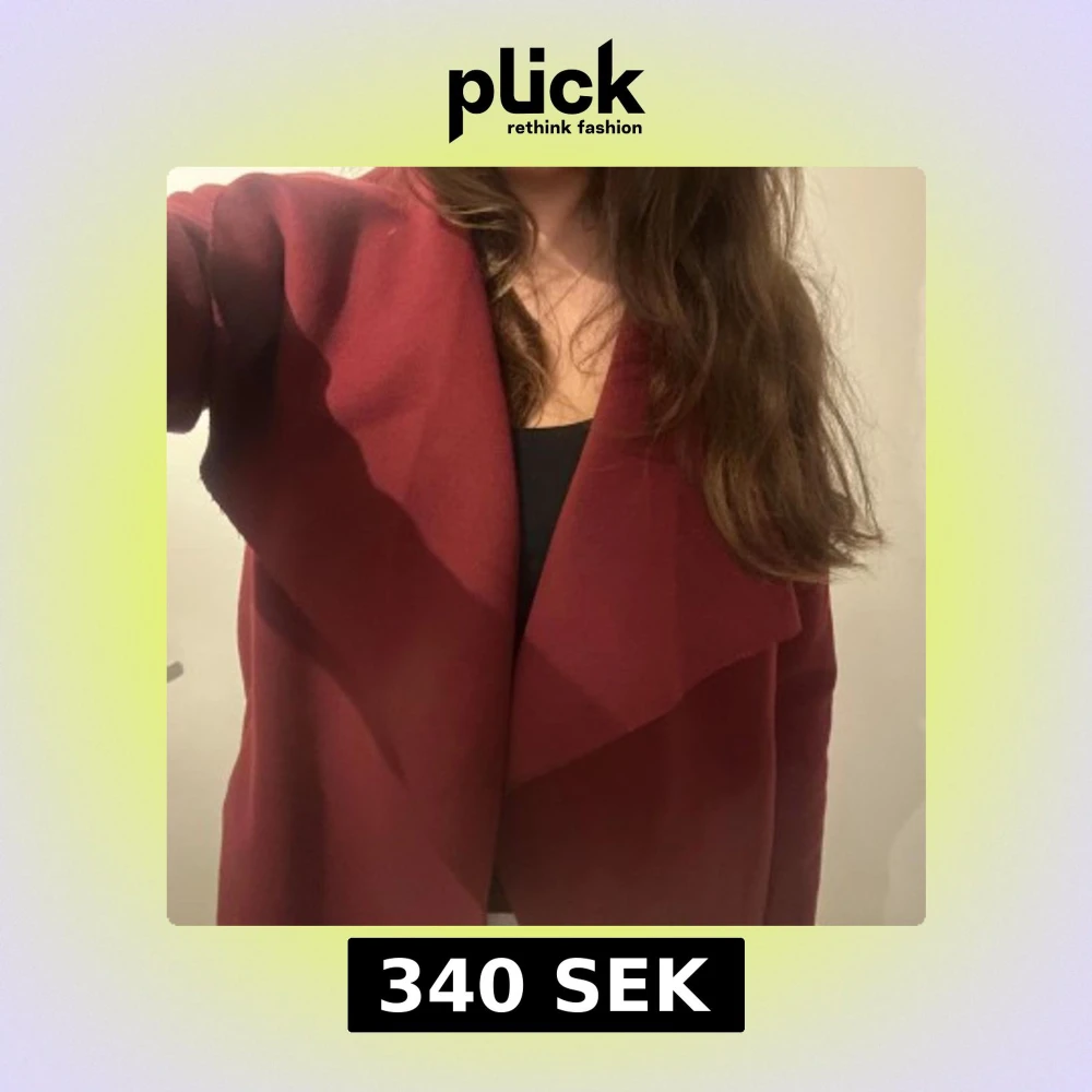 Snygg vinröd kappa med omlottkrage och bälte i midjan. Jackan har en stilren design med långa ärmar och mjukt tyg som ger en skön känsla. Perfekt för dig som vill ha en trendig look under höst och vinter.