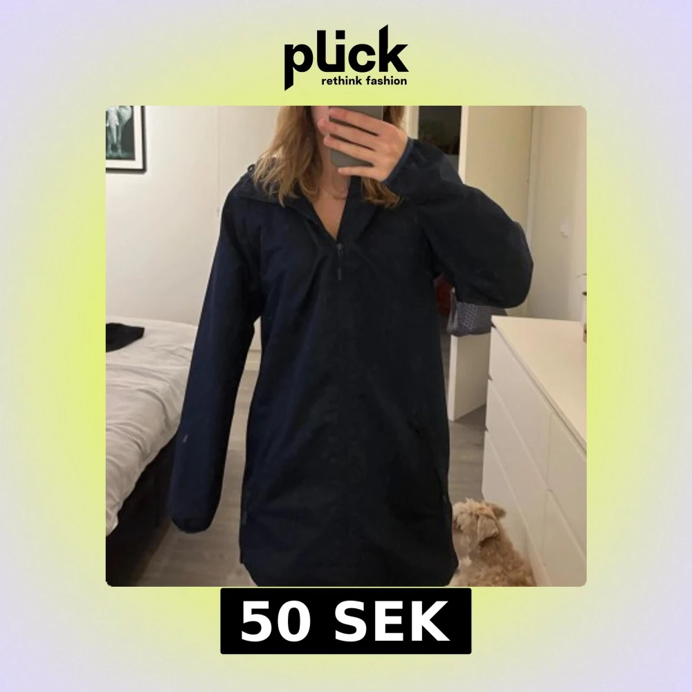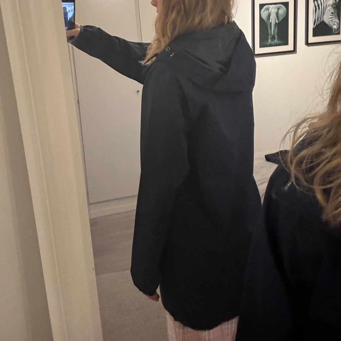 Knappt använd av mig, väldigt lång, tunn regnkacka