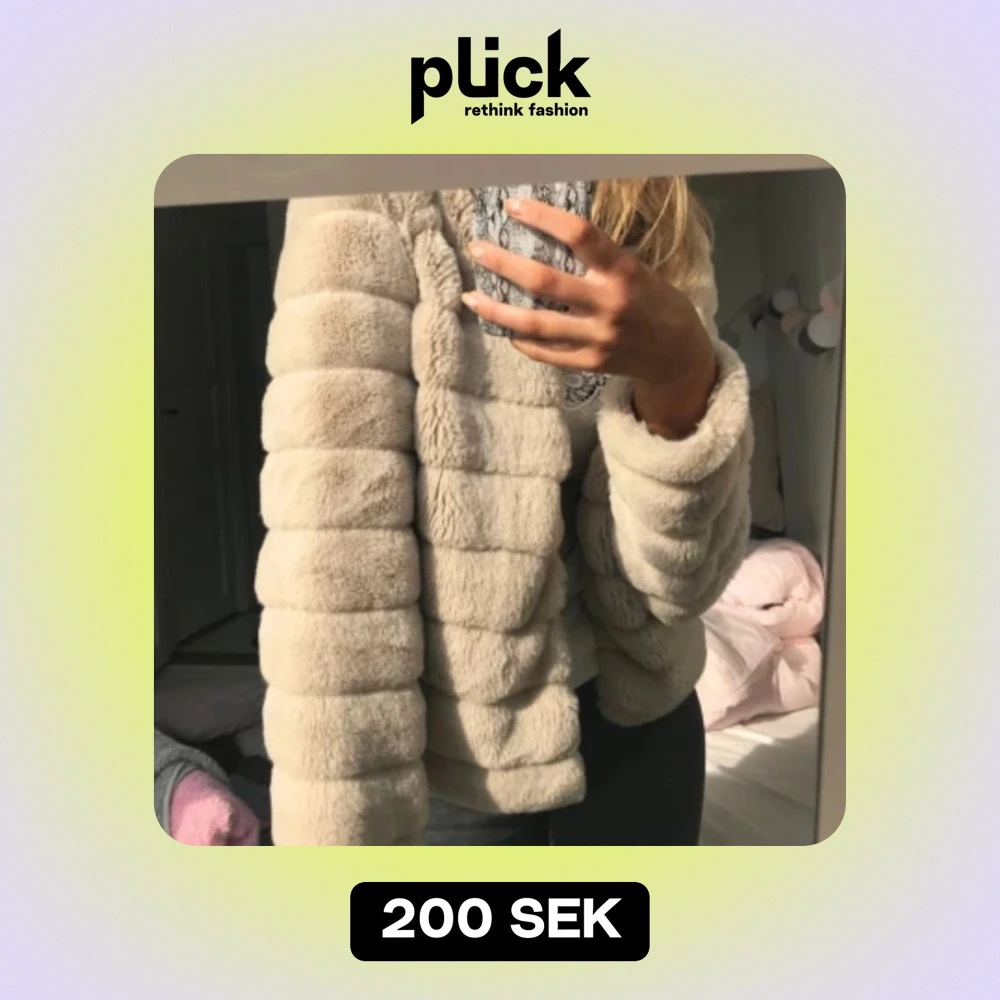 Jättefin lite tunnare pälsjacka från Gina Tricot i en lite mörkare beige färg/ ljus grå🩷 Perfect nu till våren!