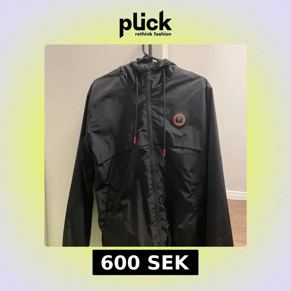 Snygg svart vindjacka från Trapstar med huva och dragkedja. Jackan är i bra kondition