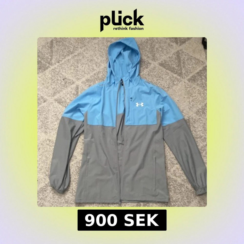 Snygg tvåfärgad vindjacka från Under Armour i blått och grått. Jackan har huva, dragkedja framtill, elastiska muddar med logga och praktiska fickor. Perfekt för blåsiga dagar och sportiga outfits. Använd en enstaka gång