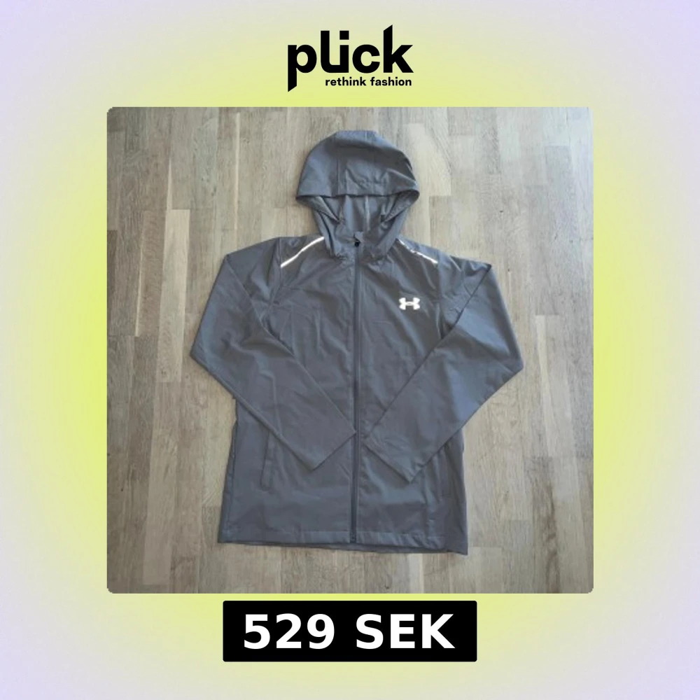 Snygg grå windbreaker från Under armour som även går att använda som zip hoodie. Jackan har reflekterande detaljer, logga på bröstet och är väldigt lätt. Storleken är L, men är något mindre i storleken så passar nog M också. Finns att hämta utanför Karlstad, annars går frakt att lösa.