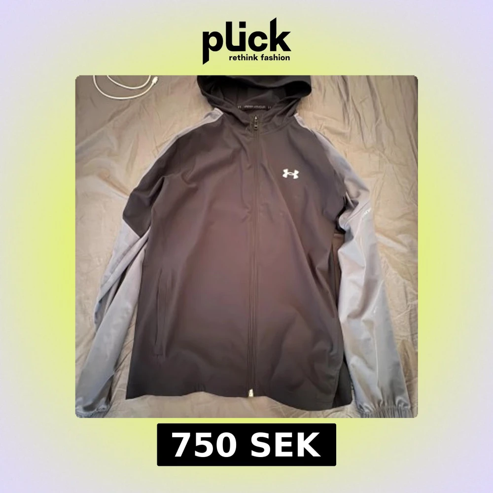 Under Armour jacka – svart & grå Snygg och bekväm Under Armour-hoodie med dragkedja. Svart på kroppen och gråa ärmar – enkel, stilren och perfekt för både träning och vardag. Tunn och lätt i materialet, så den funkar bra som ytterlager eller under en jacka när det är kallare. Detaljer: • Lätt och stretchigt material • Hela dragkedjan framtill • Huva och fickor på sidorna • Resår i ärmsluten • Under Armour-logga på bröstet och ärmen I bra skick och väldigt skön att ha på sig – funkar året