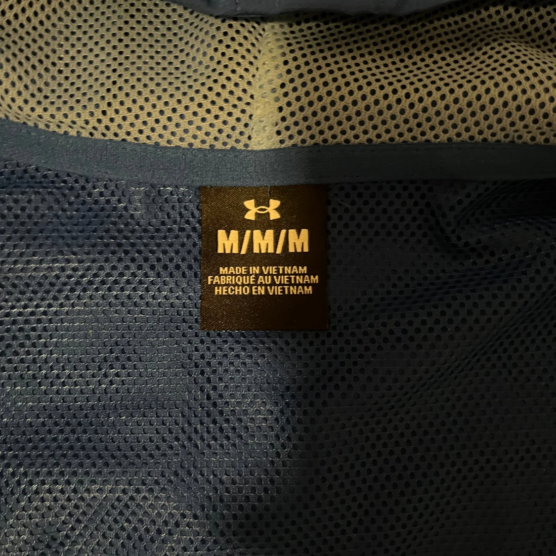 Blå vindjacka från Under Armour - Under armour vindjacka som jag inte använder. Det är storlek L men den passar bättre M