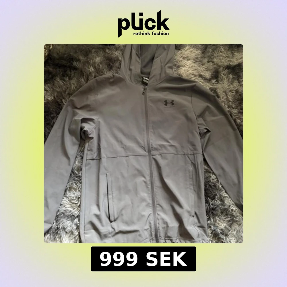 Snygg grå vindjacka från Under Armour med huva och hel dragkedja framtill. Jackan har två sidofickor och diskret logga på bröstet. Perfekt för träning eller chill dagar ute. Långärmad och med stilren design som passar till det mesta.