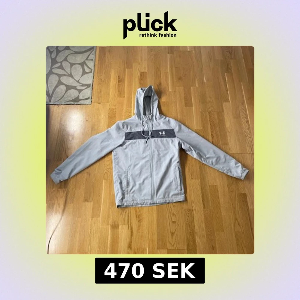 Snygg ljusgrå vindjacka från Under Armour med svart panel och logga på bröstet. Jackan har huva med snörning, dragkedja framtill och två fickor. Tillverkad i lätt polyester med meshfoder för extra komfort. Perfekt för blåsiga dagar och sportiga outfits.