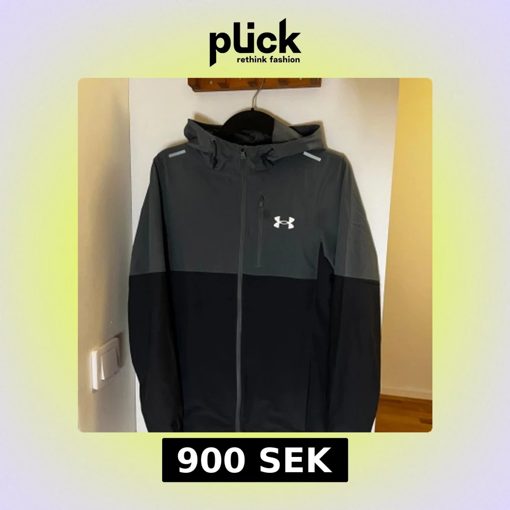 Snygg vindjacka från Under Armour i grått och svart med huva och hel dragkedja. Jackan har en sportig look, reflekterande detaljer på axlarna och en bröstficka med dragkedja. Perfekt för blåsiga dagar och träning utomhus.