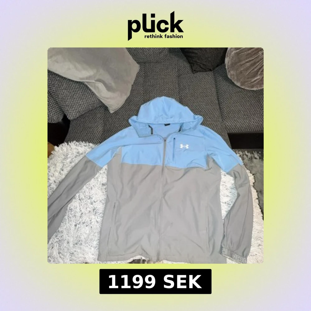 Snygg vindjacka från Under Armour i ljusblått och grått. Jackan har huva, dragkedja framtill, bröstficka med logga och långa ärmar. Perfekt för blåsiga dagar och sportiga outfits. Elimited Edition sista av sitt slag och jätte bekväm. PRIS KAN DISKUTERAS!
