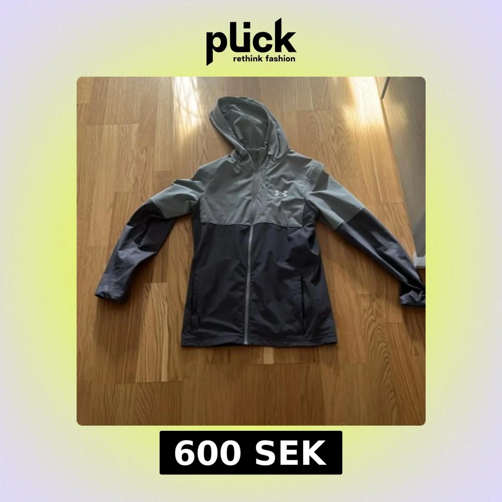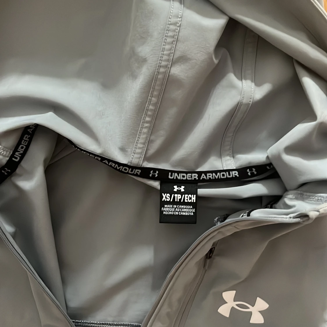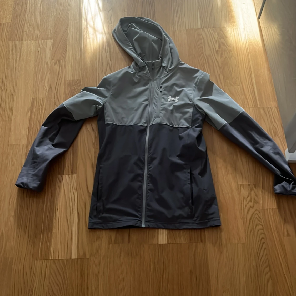 Snygg tvåfärgad vindjacka från Under Armour i grå och mörkgrå toner. Jackan har huva, hel dragkedja framtill och lång ärm. Perfekt för dig som gillar sportig stil och vill ha något lätt och funktionellt. Logga på bröstet och praktiska fickor.