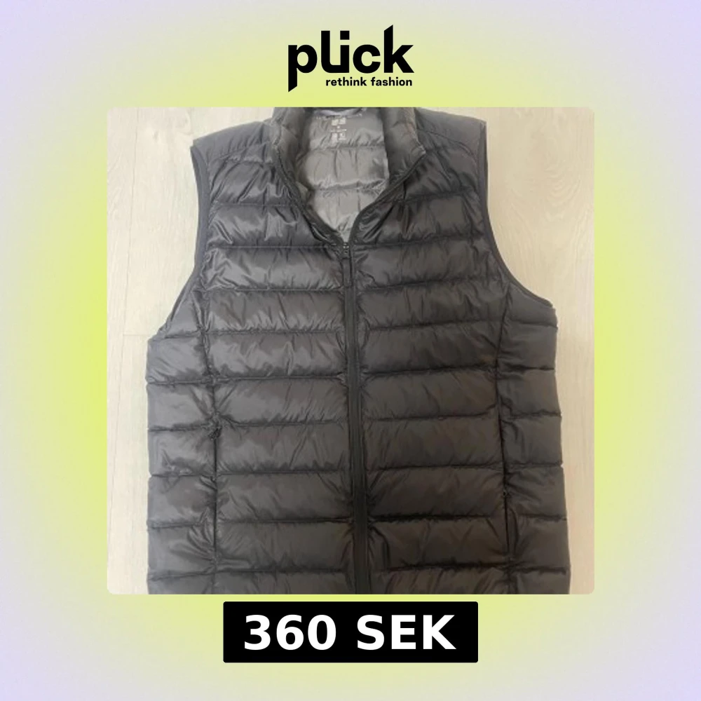 Säljer en stilren svart dunväst från Uniqlo. Västen är ultralätt och har en dragkedja framtill. Perfekt för lager-på-lager under kyliga dagar.