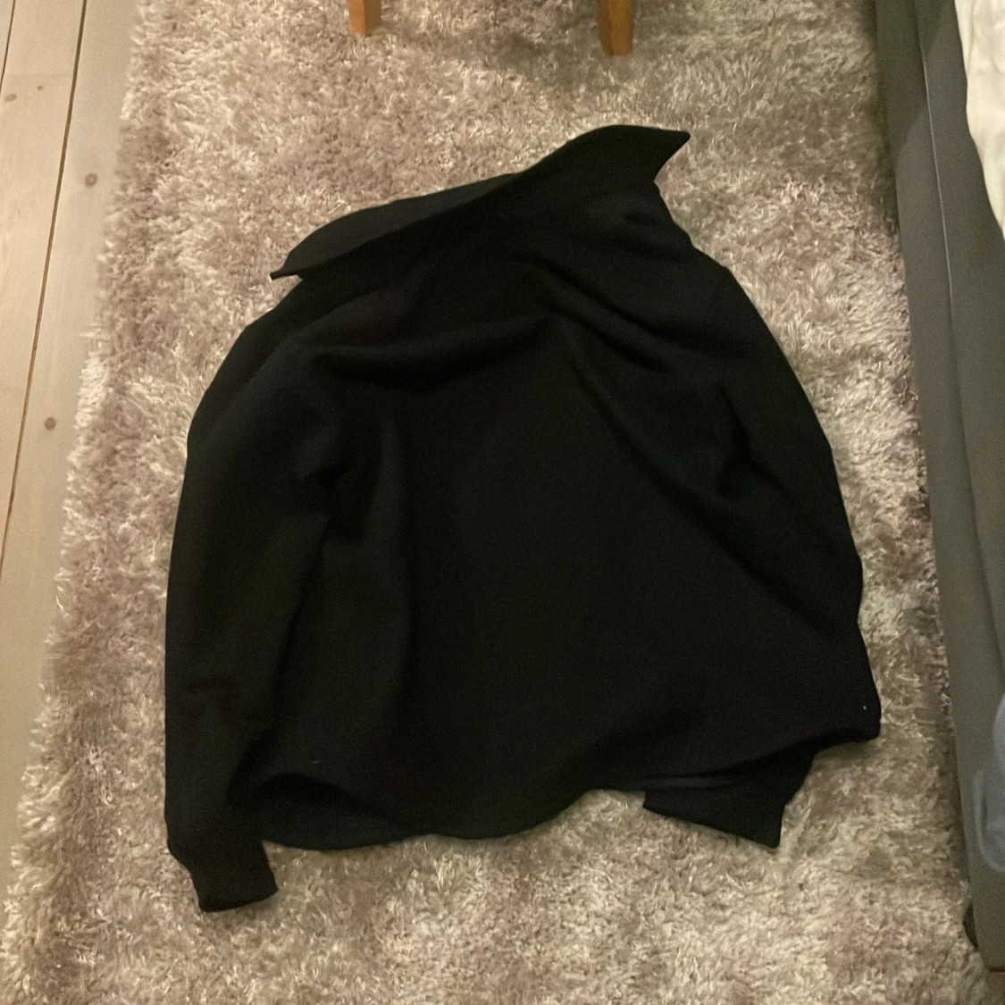Stilren svart overshirt från Uniqlo i storlek XL. Skjortan har klassisk krage, knäppning framtill och långa ärmar. Perfekt att slänga över en t-shirt för en clean look. Materialet känns mjukt och lätt, troligtvis bomull eller polyester.