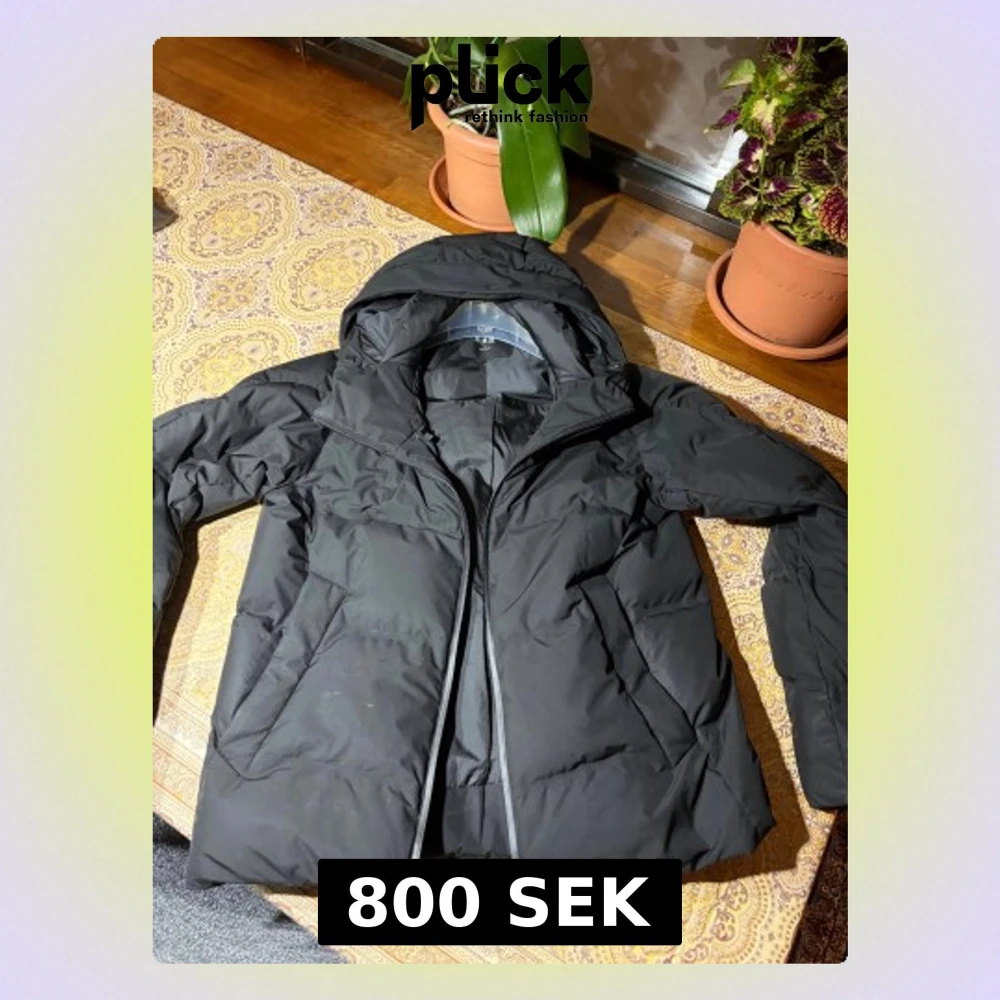 Svart pufferjacka från Uniqlo i storlek M. Jackan har huva, dragkedja och två sidofickor. Materialet är lätt, vindtätt och vattenavvisande syntet. Perfekt för kalla dagar med sin quiltade design och stilrena look.