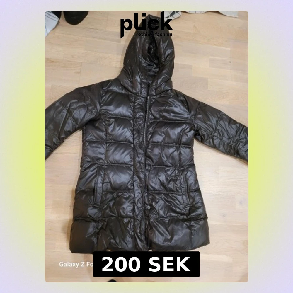 Säljer en svart dunjacka från Uniqlo i storlek M. Jackan har en snygg quiltad design, huva och dragkedja framtill. Den är lång och har två praktiska fickor på sidorna. Perfekt för kalla dagar och har en stilren look som funkar till det mesta.
