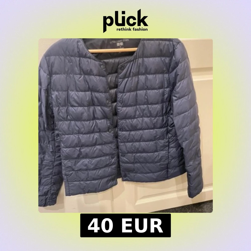 Säljer en stilren blå ultralätt dunjacka från Uniqlo. Jackan har en quiltad design med knappar framtill och långa ärmar. Perfekt för lager-på-lager under kyliga dagar.