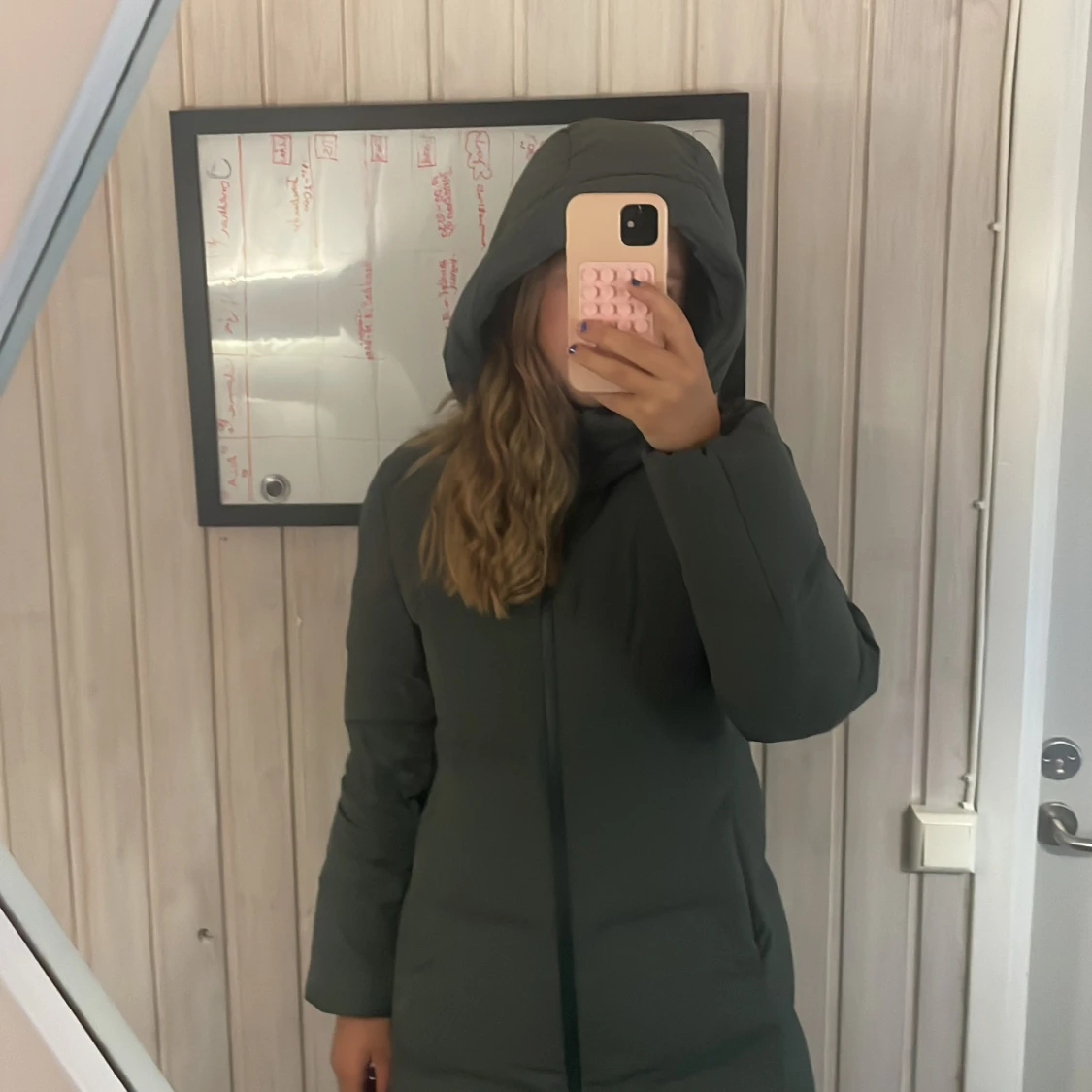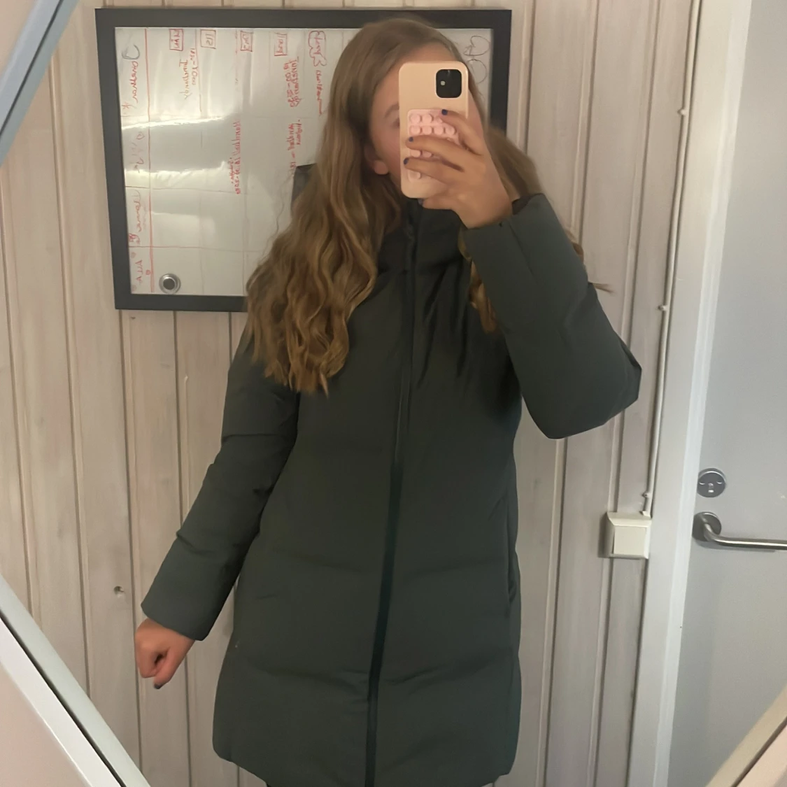 Säljer en grön lång pufferjacka från Uniqlo💚 med huva och dragkedja. Jackan är vindtät, vattenavvisande och lätt, perfekt för kalla dagar. Enkel och stilren design med två fickor på sidorna och raka ärmar. Inga hål eller fläckar!💓 så sjukt mysig och perfekt till vintern❄️storlek M men för min del mer som en S!😍