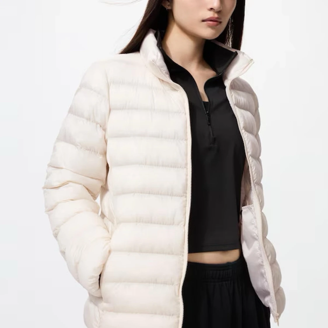 Säljer en stilren dunjacka från Uniqlo med horisontella sömmar och hög krage. Jackan har dragkedja framtill och är lätt vadderad. Perfekt för kyliga dagar och enkel att matcha med olika outfits. Den sista bilden är bara för att visa modellen tydligare men den är vit som på de två första bilderna! Nypris 850💕